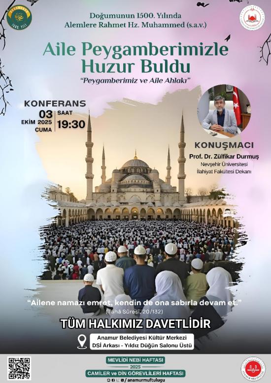 Fakültemiz Dekanı Prof. Dr. Zülfikar Durmuş, Mevlid-i Nebi Haftası etkinlikleri kapsamında “Aile Peygamberimizle Huzur Buldu – Peygamberimiz ve Aile Ahlakı” konulu bir konferans verecektir.