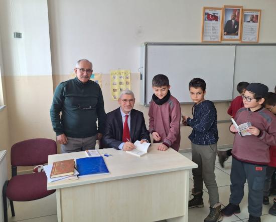 Konferans sonrasında da Prof. Dr. Mehmet Soysaldı, “Çağları Aydınlatan Peygamber Hz. Muhammed (s.a.v.)” adlı kitabını öğretmenler ve öğrencilere imzalayarak hediye etmiştir.